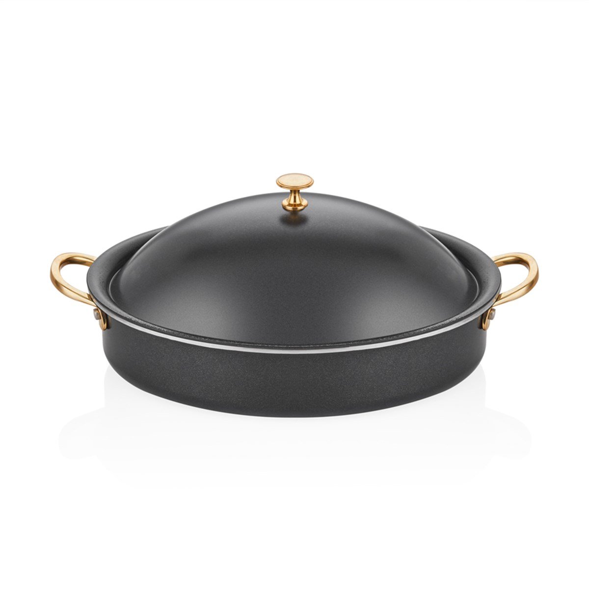 _Black Pearl Series. _25*17cm. Oval, Casserole. _2,80mm 2-Ply (430 / Aluminium) _Brass Handle, AG2 Alloy Rivet. _Flat Bottom. _304 S.Steel Lid. _Inner Satin Polished/Outer Nonstick Coated.
